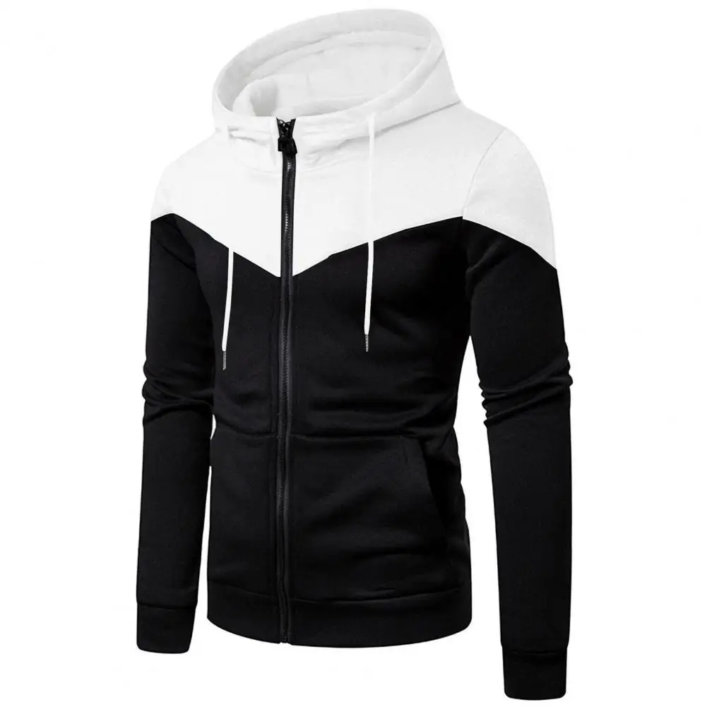 Patchwork Hooded Sweatshirt Contrast Color Hooded Sweatshirt Coat Men's Winter Jacket with Zipper Placket Long Sleeve Pockets