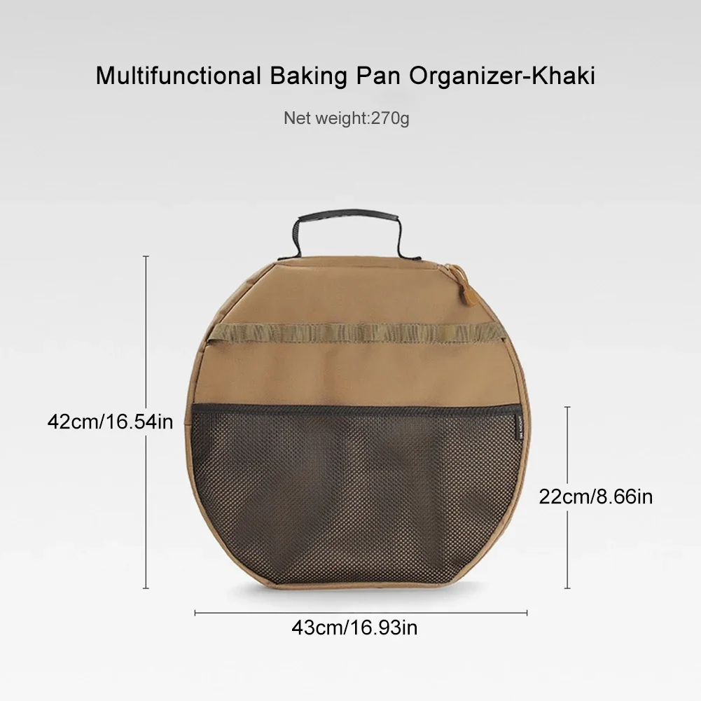 Bakeware Storage Bag 600D Oxford Cloth Thickened Pan Storage Pouch Multipurpose Large Capacity for Outdoor Beach Picnic Suppiles Features: 1 and Protective: This camping pot storage bag is designed to soundly store your Maifan stone flat pan and frying pan, featuring thickened shockproof supplies and extra pockets for straightforward sporting 2 Oxford Cloth: Made from 600D Oxford cloth and covered with pearl cotton, this fish fry plate tote bag presents exceptional sturdiness and protects your cookware from external impact, ensuring long-lasting use 3 Storage Space: The exterior mesh pocket and hanging straps of this frying pan storage bag expand the accessible space, permitting you to conveniently shop barbeque tongs, scissors, camping utensils, and extra with out compromising organization 4 and Portable: The comfortable and comfortable manage of the grilling pan garage bag gives a advanced grip in comparison with woven straps, making it effortless to carry your cookware anyplace you go Enjoy optimum comfort throughout your outside adventures five Compatibility: This tenting baking pan bag is ideally fitted for storing griddles, collapsible silicone pots, bowls, cups, kettles, and other silicone cookware inside a diameter of 42cm/16 Experience hassle-free garage and effortless organization for all of your outdoor cooking essentials Specification: Origin: Mainland China Material: 600D Oxford Cloth + Pearl Cotton Color: Black, Khaki Size: 43*42cm/16*16 Net Weight: 270g Suitable For Baking Trays Within 42cm/16 In Diameter Features: Thickened And Anti-Collision, External Mesh Pocket And Hanging Webbing, Soft Handles Note: Due to the various display screen and lightweight effect, the particular coloration of the thing is probably slightly diverse from the colour confirmed at the pictures Thank you! Please allow 1-2cm measuring deviation thanks to handbook dimension 1*Camping Pot Storage Bag