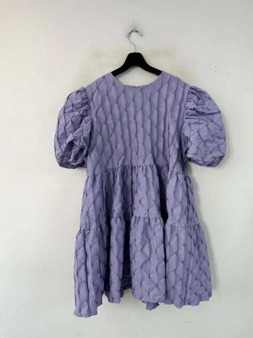 REALEFT Spring Summer Vintage Puff Sleeve Women's Dresses 2025 New High Waist O-neck Casual Loose A-line Short Dresses for Women
