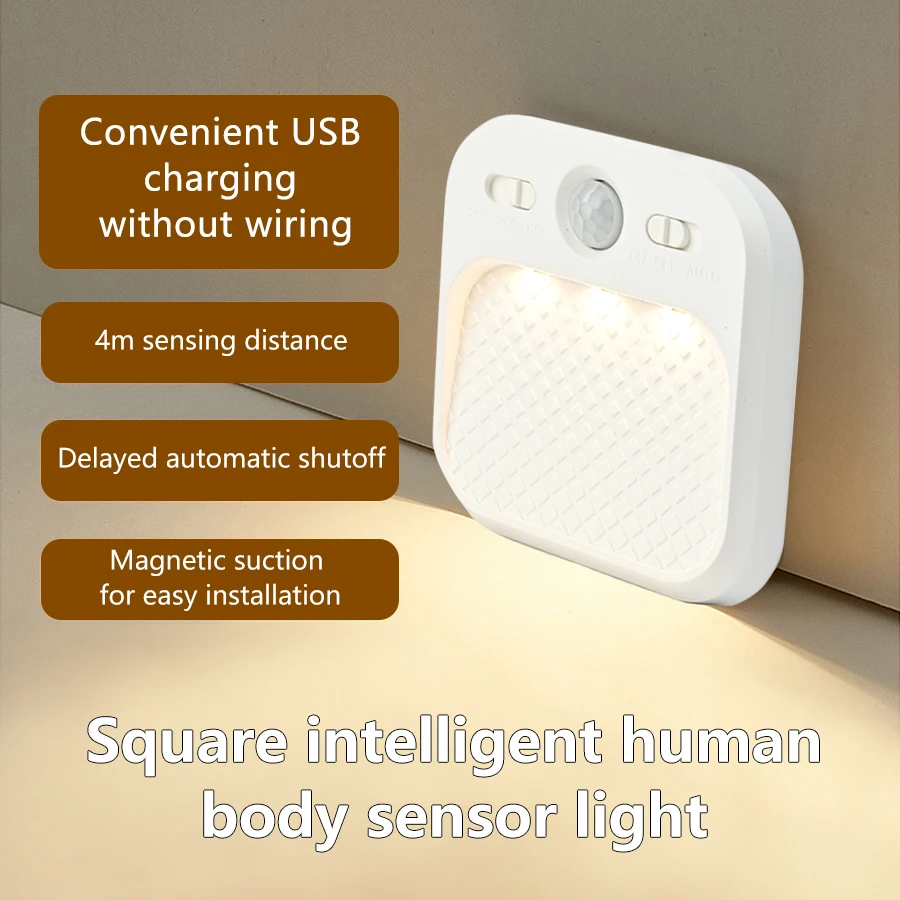 Rechargeable Led Night Light with Motion Sensor Human Induction Wireless 3 Colors Square White Portable Lamp for Hallway Stairs