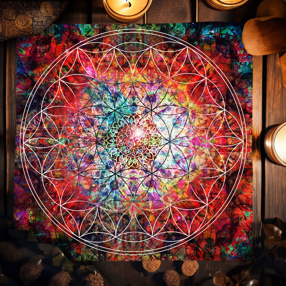 Red Flower Of Life Lunar Elementals Tarot Spread Cloth,Pendulum Divination Altar Cloth, Altar Decor, Tarot Tablecloth