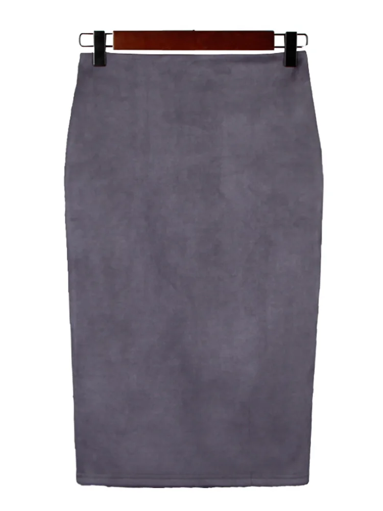 Sexy Multi Color Suede Midi Pencil Skirt Women 2024 Fashion Elastic High Waist Office Lady Bodycon Skirts Saias