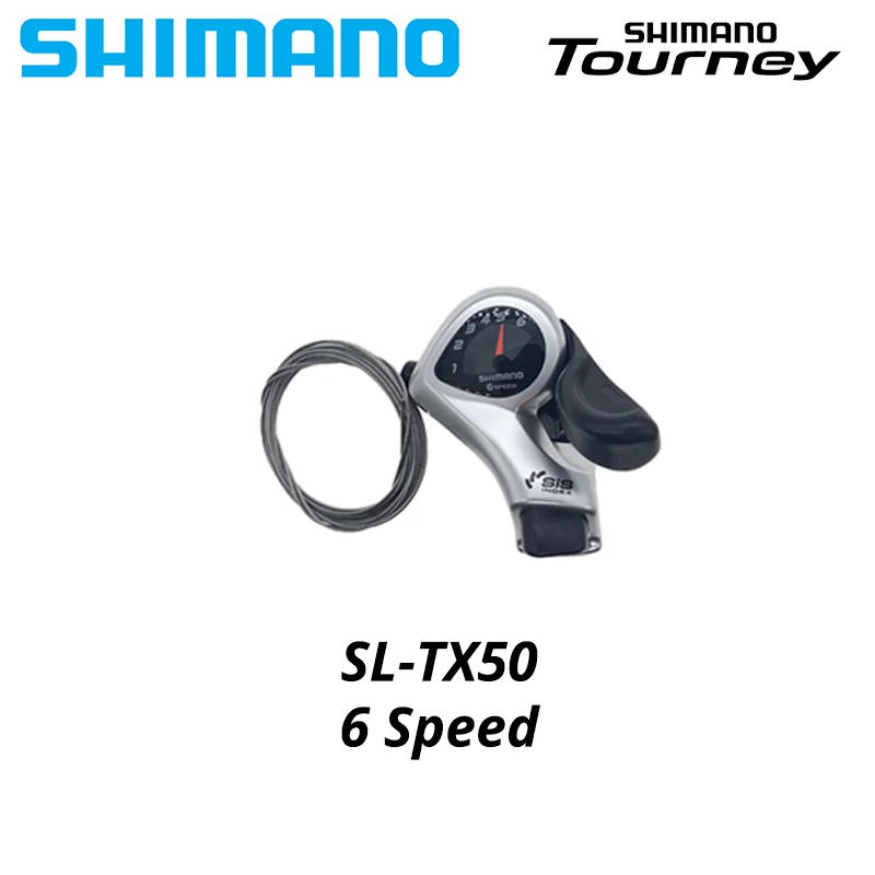 Tourney Mountain Bicycle Shift Lever – SL–TX50 SL–TX50 SHIMANO TOURNEY – Thumb Shifter Plus – Shift Lever The SHIMANO TOURNEY SL–TX50 is a thumb shifter for mountain bikes that includes SHIMANO&;s OPTICAL GEAR DISPLAY, which tells riders what equipment role is chosen whereas using MODEL:SL–TX50SERIES:SHIMANO TOURNEYCompatible RD Type:3*6 Speed / 3*7 SpeedRecommended SL outer cashing:OT–SIS40Shifter type:Thumb Shifter PlusSL–TX50 Left lever 3 SpeedSL–TX50 Right lever 6 SpeedSL–TX50 Right lever 7 Speed