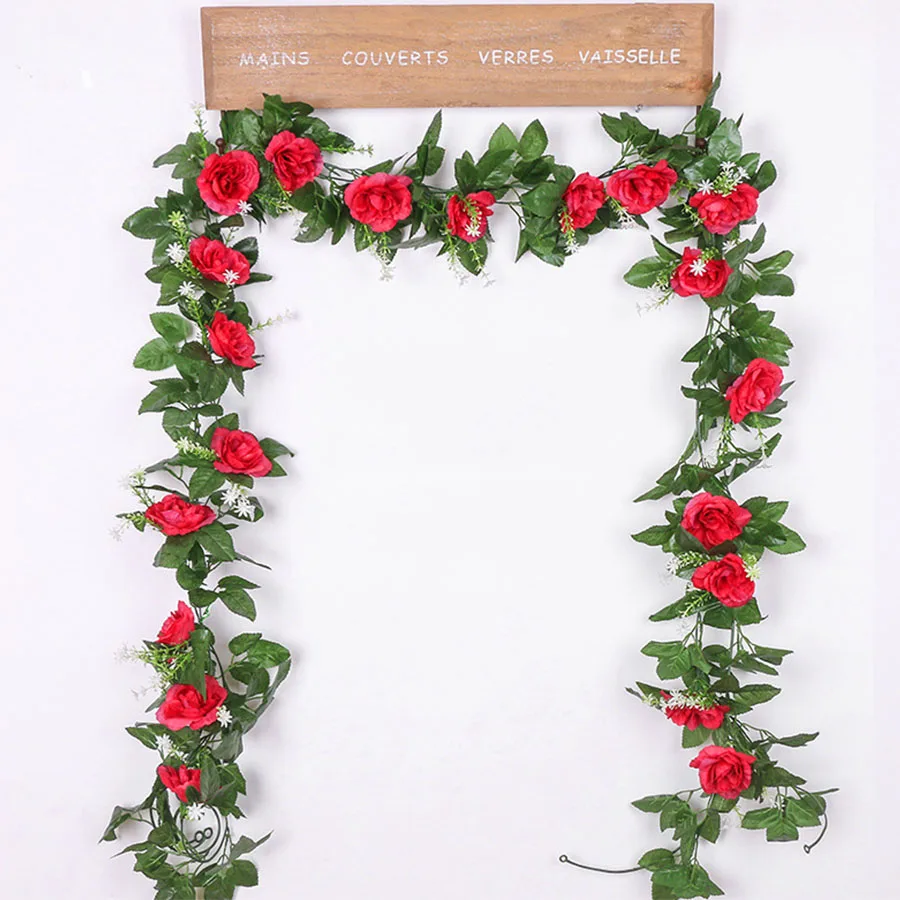 silk artificial rose vine hanging flowers for wall decoration rattan fake plants leaves garland romantic wedding home decoration