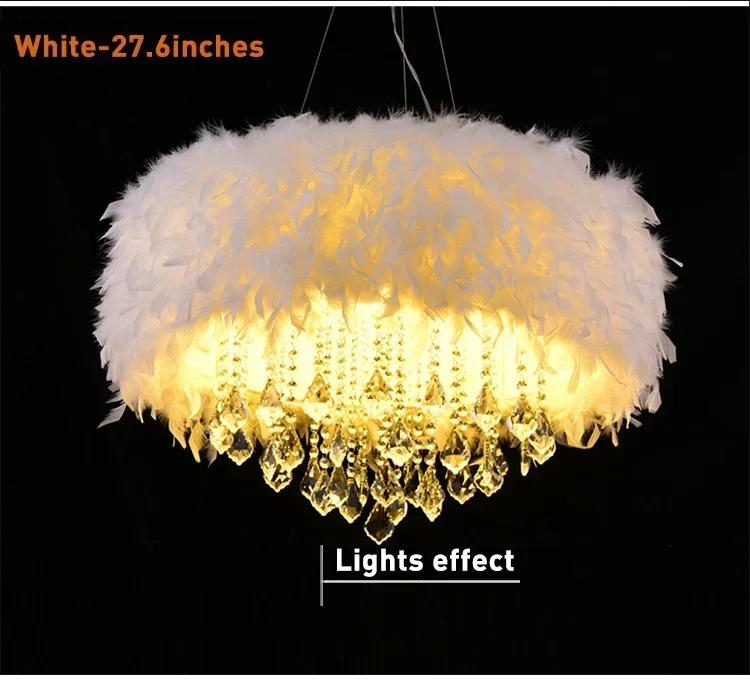 Simple and Modern Led Crystal Feather Lamp Romantic Wedding Lighting Net Red Bedroom Ins Girl Creative Ceiling Chandelier SIZE: 【40cm Feather Chandelier】 Light source: E27*3 Material: Feather + Iron + Crystal Application: bedroom, residing room, study, hallway Gift: Free mild bulb 【50cm Feather Chandelier】 Light source: E27*5 Material: Feather + Iron + Crystal Application: bedroom, residence room, study, hallway Gift: Free mild bulb 【60cm Feather Chandelier】 Light source: E27*6 Material: Feather + Iron + Crystal Application: bedroom, living room, study, hallway Gift: Free gentle bulb The cable could be adjusted freely, the complete size is 1m 【Note】If you've any product questions, please be at liberty to the touch us, we can provide you with satisfactory provider Shopping Notes 【About logistics and delivery】We will carry the goods as soon as probable after putting the order. If you've any questions, please feel free to the touch us, and we are able to present you with satisfactory service. 【Wrong hair and lacking hair】 If you come back upon fallacious hair and lacking hair, we will reissue or replace it in time for you. If you've got any questions, please provide pictures in time and make touch with the after-sales carrier for you to deal with. 【About warranty】2years guarantee (except for man-made damage) 【About pictures】 All product photos are genuine pictures of the scene, and there might also be browser issues that may trigger colour errors. 【About size】 The size is manual measurement, there might also be 3-5cm error, please talk over with the particular product. 【Other questions】 If you've got any questions about the product, please be at liberty to touch us, we will present you with passable service.