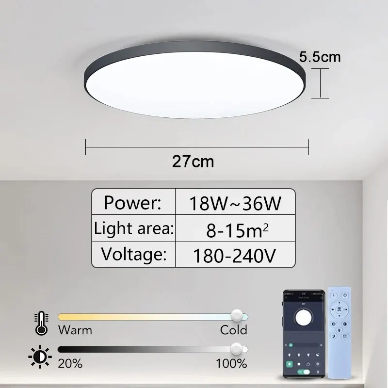 • Smart LED Technology :Experience the future of lighting with BENEWTON&;s Smart LED Ceiling Lamp This 36W-50W 220V dimmable lamp offers modern genre and convenience with its app handheld remote control characteristic • Dimmable Control :Adjust the lighting depth for your desire with the lamp&;s dimmable management Create a comfortable atmosphere on your bedroom or living room with just a tap on your smartphone • Surface Mounted Design :The surface-mounted design of this ceiling light ensures clean installation and seamless integration together with your present home decor • High-Quality Material :Constructed from PP/Plastic, this ceiling gentle is sturdy and designed to last, offering long-term carrier for your lighting fixtures needs • Versatile Usage :Whether you&;re studying, relaxing, or just striking out, this ceiling gentle is perfect for every single day lights needs, providing a vibrant and clean illumination • Large Lighting Area :With a lights field of 15-30 sq. meters, this ceiling light covers a wide area, guaranteeing adequate light reaches every corner of your area Smart LED ceiling lamp 36W 50W 220V dimmable leading-edge LED ceiling lights with app handheld remote control for bed room residing roomFeatures: Simple yet no longer ordinary:Modern simple design and sensible management Change the lighting keep on with your mood Specifications: Shell color:Black/White Voltage:220V(180-240V is ok) Lumen 90-120LM/W Lifespan: >20000hour Color temperature: 3000K-6000K Size/Wattage: 370mm(25W~50W); 270mm(18W~36W); *Cold and Warm mild are 1/2 power;Natural gentle is full power Application: For the bedroom, residing room, conference room, kitchen, dwelling room, hall, kitchen, bathroom, hallway, stairwell, workshops and exhibitions, and many others Package Includes: LED Ceiling Lamp Remote Control Instructions 3 Control modes: - APP Control/2 Remote Control/Switch ControlControl via mobile phone any time - Don&;t seek for the handheld remote control hidden in the corner