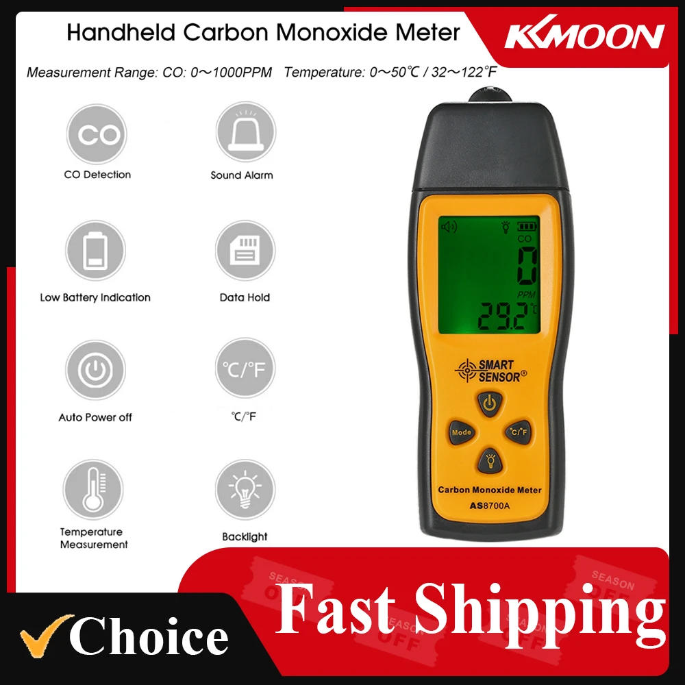 SMART SENSOR AS8700A Gas Analyzers Handheld Carbon Monoxide Meter Tester Monitor Detector Gauge LCD Display Sound Light Alarm