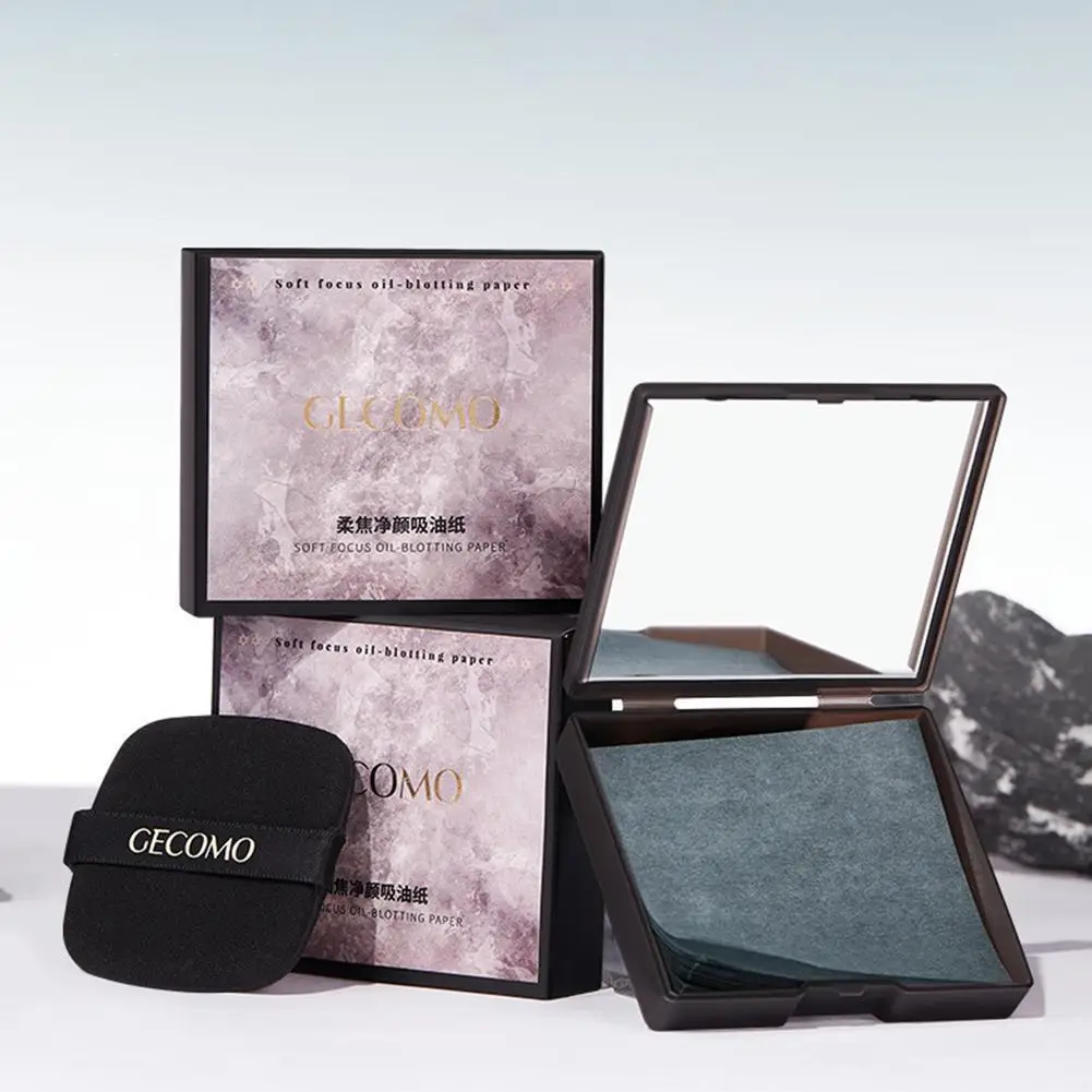 Soft Focus Oil Blotting Paper Face With Puff Mirror Makeup Portable Makeup Holding Refreshing Oily Skin Oil Removing Paper