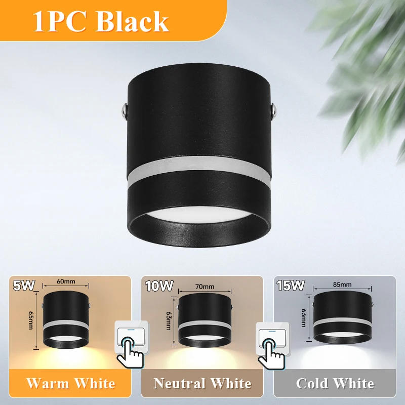 Specification:-Power: 5W 10W 15W -Voltage: AC165-265V -Product color: black/white -Material: Aluminum+PMMA -Light source: LED -Luminous color: Warm white: 3000K/Natural white: 4000K/Cool white: 6000K -Beam angle: 120° -Color rendering index: Ra>80 -Warranty period: 1 years -Installing method: surface installation, embeddedStrong Heat DissipationEffective warm temperature dissipation to ensure product existence Color TemperaturesFlicker-free driverAn anti-flicker module is in-built the driver, which effectively solves the problem of lamp flicker and protects eyesight Various Usage ScenariosSuitable for bedroom,living Room,restaurant, hallway,store and so on.