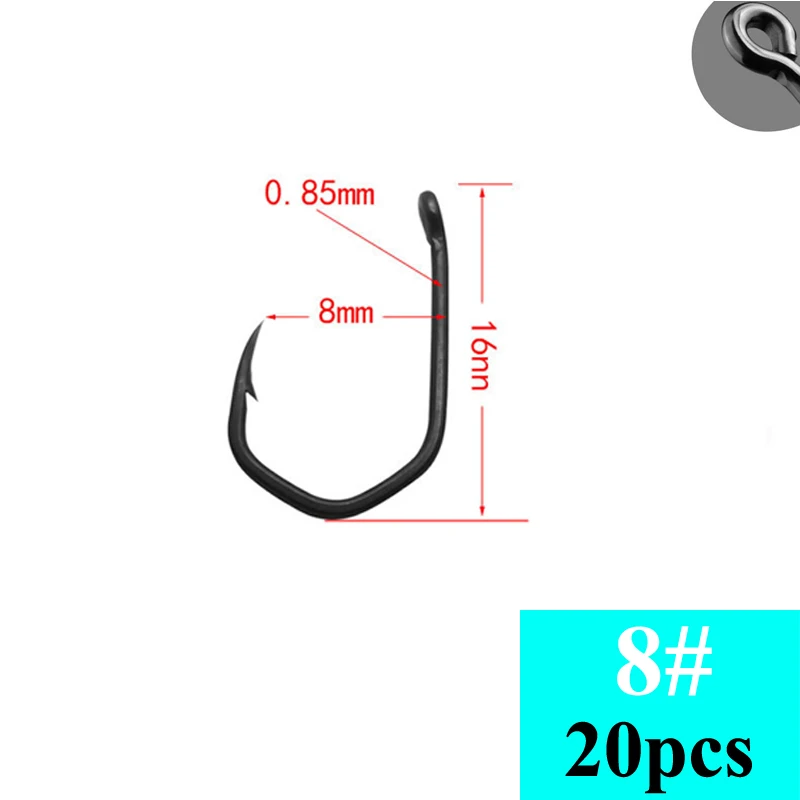 Stainless Steel Carp Fishing Hooks, Barbed Pinpoint Claw Hooks, PTFE Coating, High Carbon, Eyed Fish Hooks, 20Pcs
