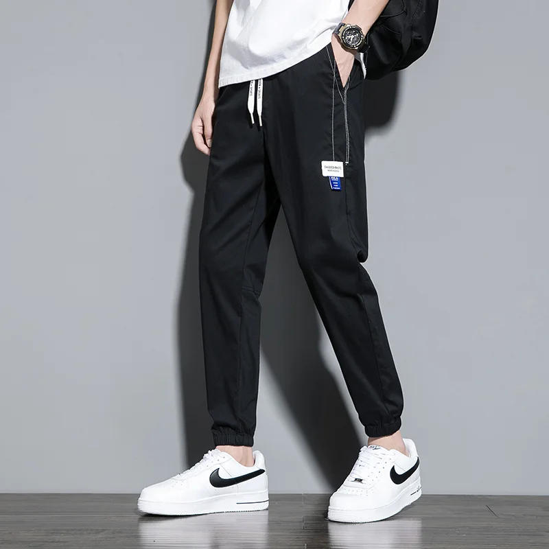 Summer Thin Workwear Pants Men's Ice Silk Slim Fitting Sweatpants Trend Leggings Bundle Foot Casual Men Street Trousers