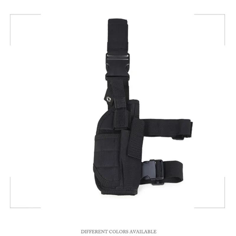 Universal Drop Leg Gun Holster Right Handed Thigh Pistol Bag Pouch Legs Harness for All Handguns Huntting Accessories Feature: ● thigh pistol holster ● Used to hold handgun, pistol ● Can be connected in the wrist belt and connect to the leg ● Fully adjustable wrap-around design for extra fit and security ● Adjustable non-slip leg straps cut movement and supply most consolation ● Quick launch buckle and magic strap make this holster entirely adjustable ● Prefect regulation enforcement, hunters ● Detachable when no longer in use Specification: ● Size(abt): Bandage Strap Length 48-53cm, Holster 28*20cm ● Weight: About 300G ● Color:Black, Khaki, Green, CP Camo,Gray Camo Package Contents: ●1 x Thigh Pistol Gun Holster Pouch