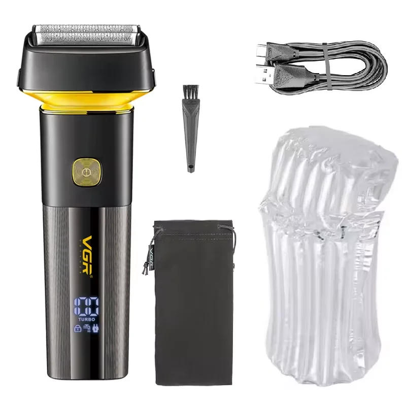 VGR 3D Men's Washable Wet Dry Electric Shaver Rechargeable Face Electric Razor bald Washable Beard Shaving Machine LCD Display