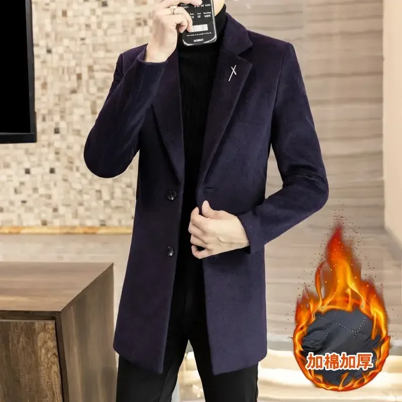 Winter Thickened Warm Long Woolen Jackets Men's Solid Color Slim Casual Business Trench Coat Windbreaker Overcoat Men Clothing