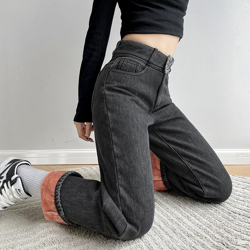 Winter Warm Fleece Wide Leg Jeans Women Vintage Baggy High Waist Denim Pants 2021 Loose Straight Mom Jean Pantalones De Mujer