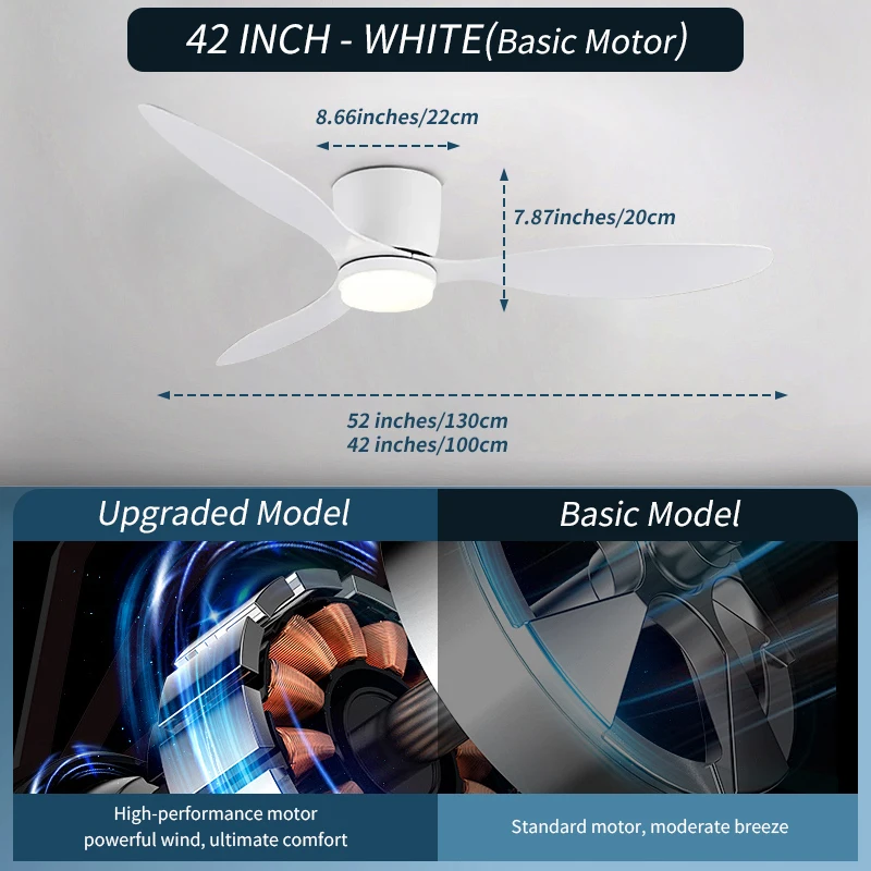 XINGOO Ceiling Fan White Low Floor Ultra Thin 17cm DC Ceiling Fan With Remote Control Simple Ceiling Fans With Light