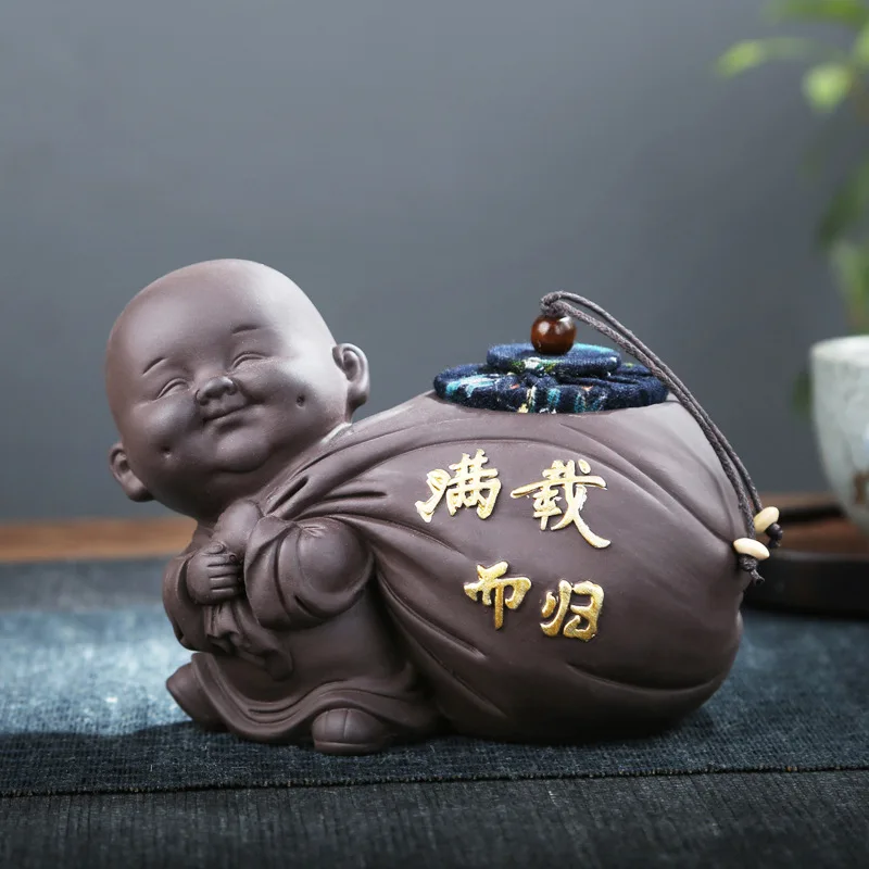 Zisha Little Monk Tea Caddy Sealed Storage Tank Creative Ceramic Gift Small Tea Caddy Home Decoration