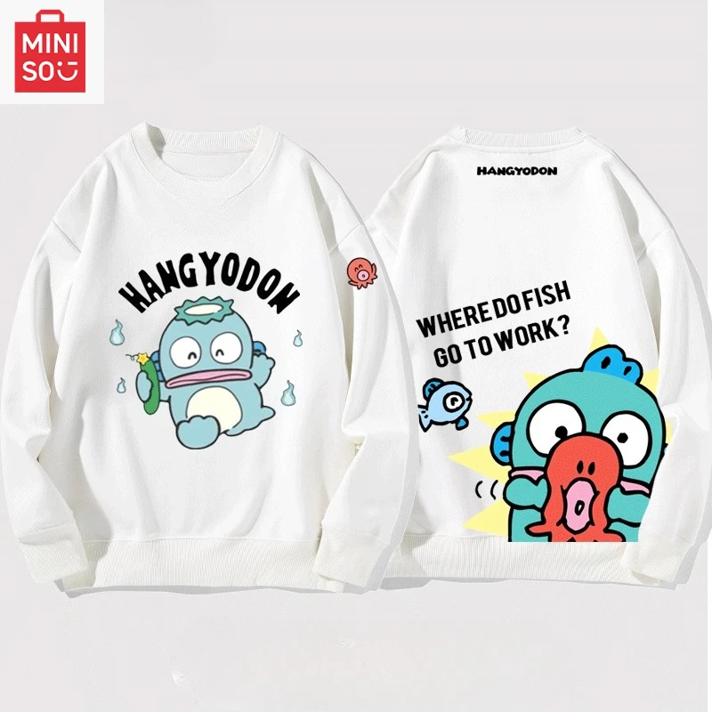 MINISO collaboration Hangyodon printed hoodie long-sleeved loose cartoonish casual and cute for girls and boys