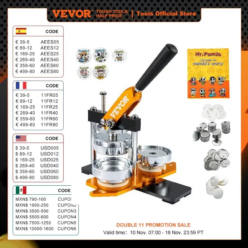 VEVOR 75mm Button Maker Machine Badge Punch Press Button Making Supplies with 100pcs Button Parts & Circle Cutter & Magic Book