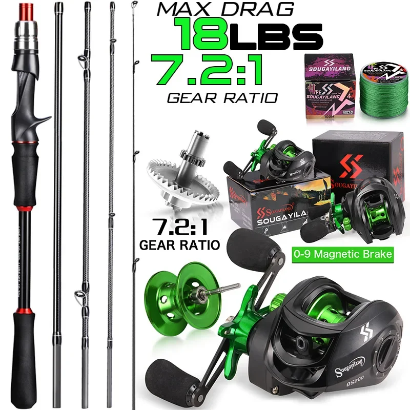 Sougayilang Fishing Rod Reel Combo 1.8~2.1m Carbon Fiber Casting Rod and 7.2:1 Speed Gear Ratio Max Drag 8kg for Bass Pike Pesca