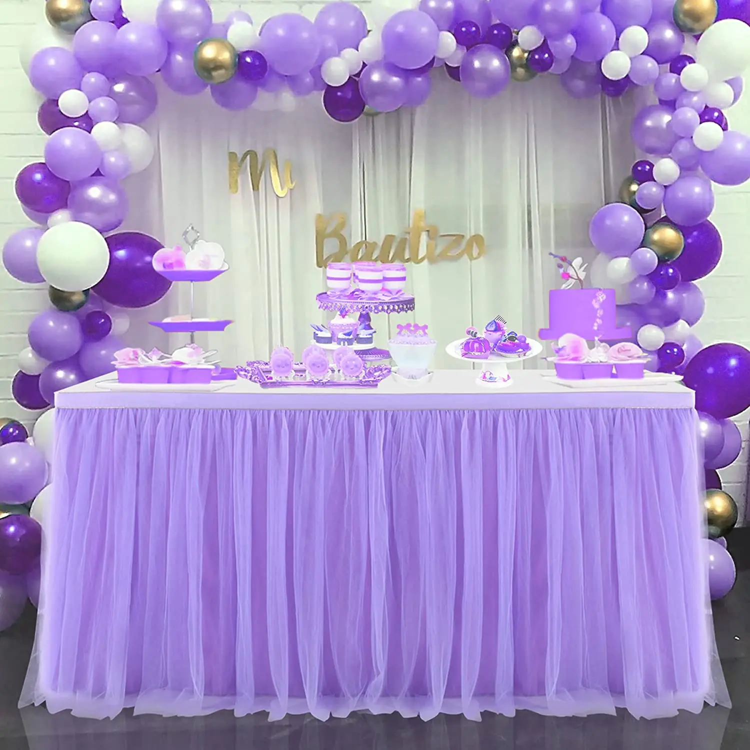 • 4FT/6FT/9FT Purple Tulle Table Skirt Wedding Party Tutu Tableware Cloth Baby Shower Gender Reveal Birthday Party Home Decoration
