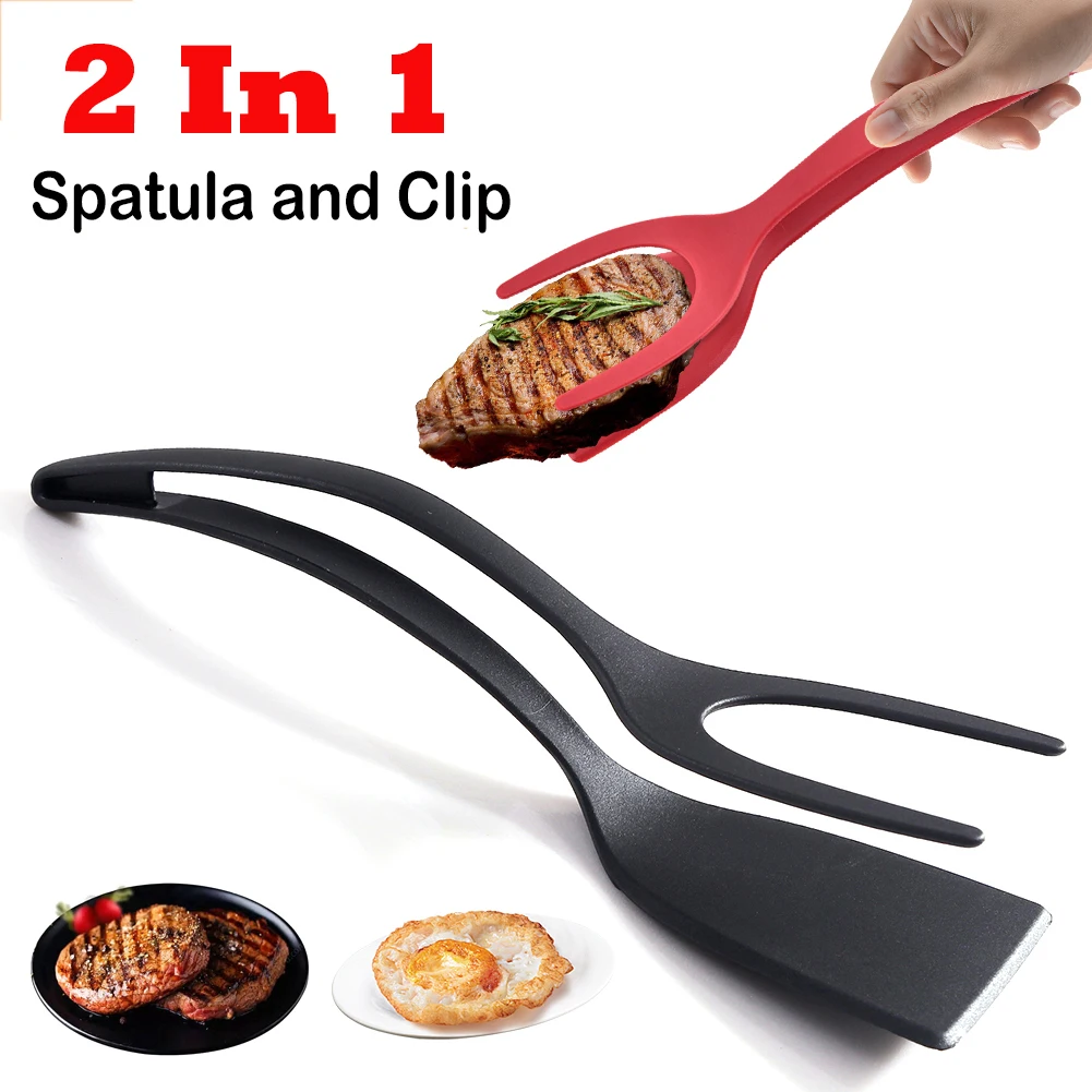 2 In 1 Nylon Grip Flip Tongs Egg Spatula Tongs Steak Spatula Tongs Clamp Pancake Fried Turners Kitchen Accessories
