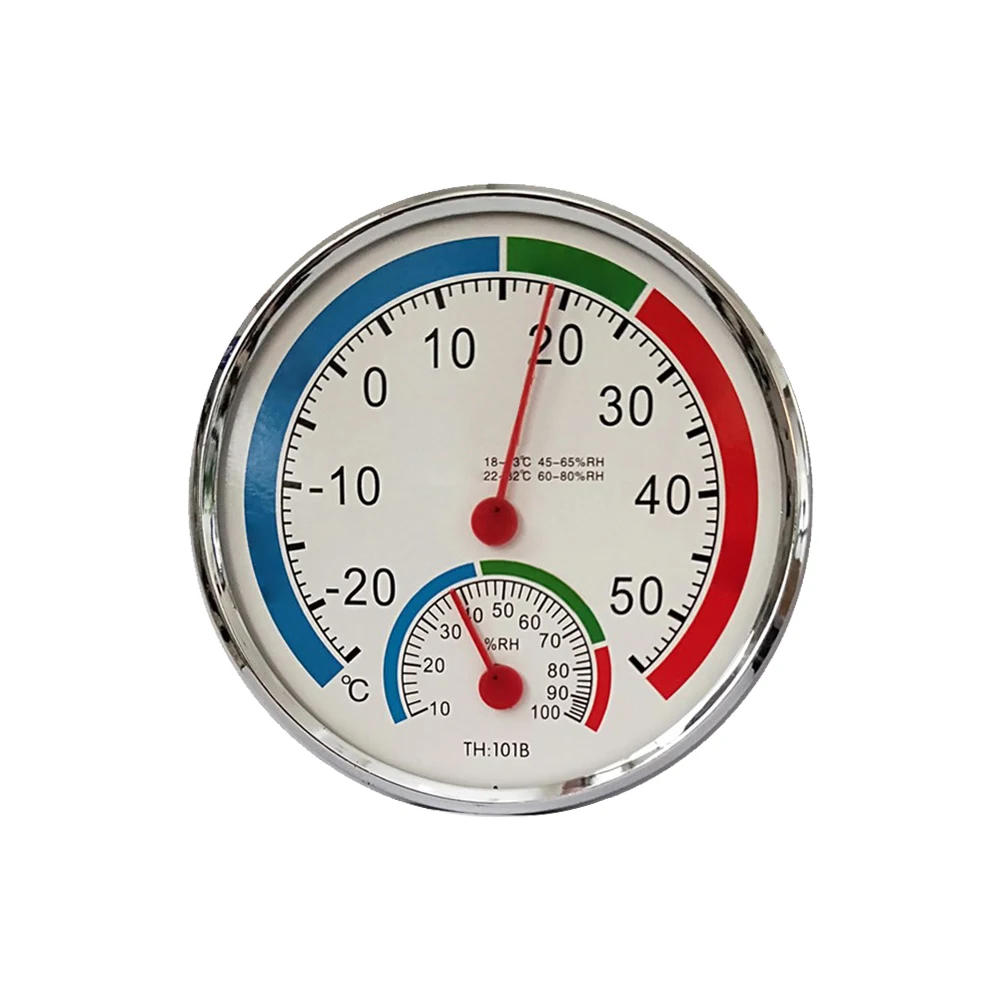 Features: 1 It is both a thermometer and a hygrometer 2 The exterior design is bell shaped with pointer scale three Suitable for monitoring traditional indoor/outdoor climatic conditions four With hook, for wall mounting or rack five It would be installed in offices, restaurants, lodge lobbies, gardens, classrooms, laboratories, workshops and residences Easy to learn High precision reliable reading Convenient length Comfort zone colour indicator With hook for wall mount or rack Specifications: Measuring range: Temperature -30℃-50℃, error ±2℃ Humidity 20%-100%, error ±5% Size: 13*13*2cm Color: White, black, blue The equipment includes: 1* hygrograph Best ambient temperature and humidity reference: The best suited environment for human body: temperature 15℃-25℃, relative humidity 45%RH-75%RH Home environment: 40%-70%RH Libraries, art galleries, museums: 40%RH-60RH Computer room, verbal exchange room: 45%RH-60%RH Cloth, cotton fabric placement: 40%-60%RH Milk storage: 50%-60%RH Fruit storage: 60%RH-70%RH Best for illness environment: 30%RH-50%RH Note: This product needs to be positioned in a naturally ventilated place, faraway from heat sources, to avoid sudden warmth Stay out of direct daylight