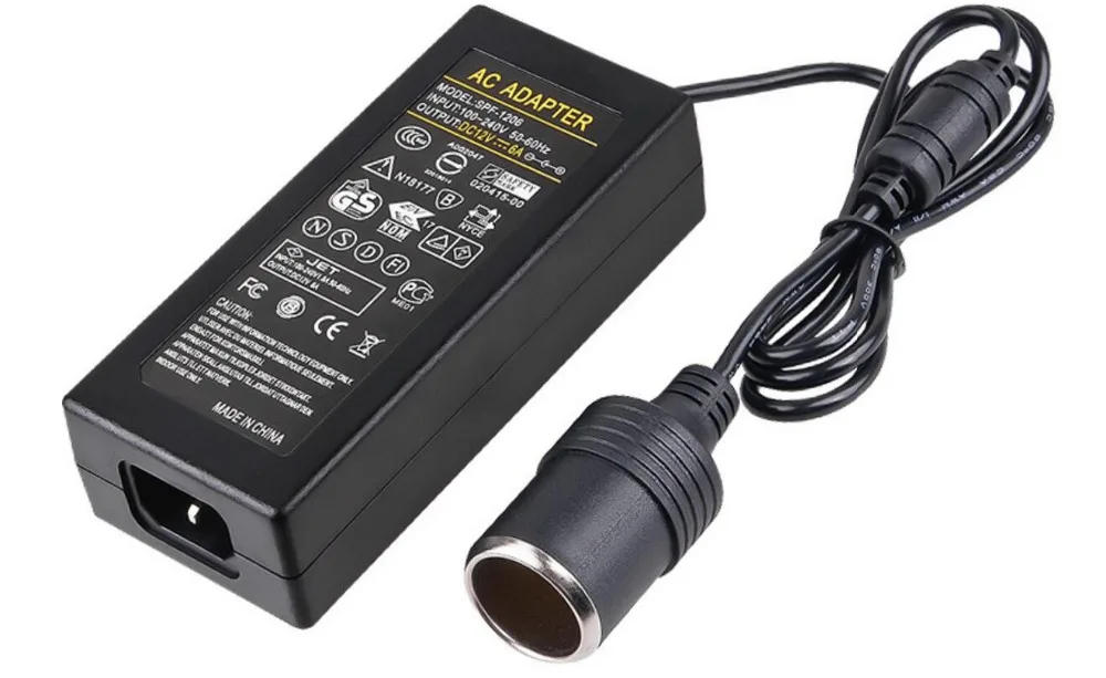 12V6A 72W Power convert AC 110V-240V input TO DC 12V 6A output adapter car power supply cigarette lighter converter Specifications: * Input: AC 100-240V 50/60Hz 1.8A Max * Output: 12V 6A * Max Wattage: 72W * DC plug size: cigarette lighter converter plug * Cable Length about: 110cm * With IC Chip : Short circuit protection, Overload protection , Over voltage protection Converts Household Power 110V and 220V to 240V AC to 12 Volts DC to Power Your 12 Volt Products and Accessories. Very convenient and Easy to use. Light and Compact: Perfect for traveling or road trip. Input: 110V and 220V to 240V AC General When the vehicle equipment works, the required power will be much bigger than their label maked, so please look at this form before order, thank you ! Package included: 1 PCx 12V 6A Power Adapter ( No AC Cable )