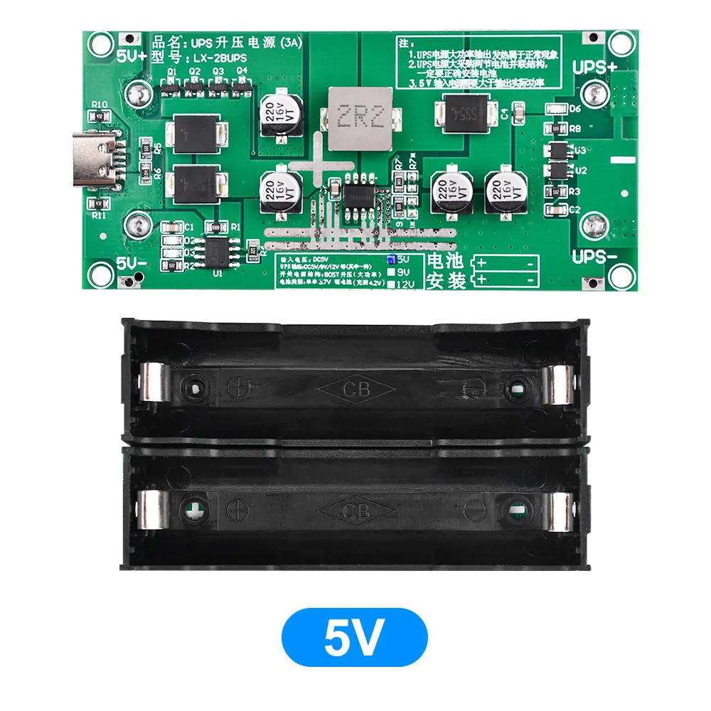15W 3A 18650 Lithium Battery Charger Module DC-DC Step Up Booster UPS Uninterruptible Power Supply /Converter Type-C 5V 9V 12V