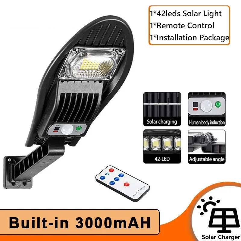 Specifications: Product model: 42LED/84LED/126LED/168LED Light physique material: PC+ABS Solar panel specifications: monocrystalline silicon five 1 Battery specification: 18650 lithium battery 3 3000MAH/5000MAH/8000MAH/10000MAH with price and discharge defense Output power: 5V/7W Charging time: 6 hours in the photo voltaic PIR sensing angle: 360 levels Sensing distance: 5-10 meters Button lighting mode: - OFF: off mode, the indicator mild is red; - First gear: Some humans coming, brightly remove darkness from for 15-30 seconds, when nobody lights off; - Second gear: Some people coming, brightly comfortable for 15-30 seconds, and when there's no one, the sunshine is always vivid and weak; - Third gear: No subject if no one is there, and the weak gentle is always on. Advantages: Solar water-resistant four-sided human body induction wall mild switch front surroundings is less complicated to operate, and added indicator gentle display, energy saving and environmental protection, green lighting, lengthy life, durability, low fault fix rate, high radiation stability, simple set up (only want 2 Screws could be constant on the outside wall that can be sun-lit. It is easy to use, clever light-sensing control, no adjustment, energy-saving and convenient, making your house extra exquisite and intelligent. Application Scenarios: Solar water-resistant four-sided human physique induction wall lamp is suitable for out of doors corridors, garden gates, roof terraces, courtyard wall villas, store windows, shops, homes and diversified outside environments, no wiring, no electricity, exquisite craftsmanship and exotic taste. 3 Lighting Modes + Remote Control Remote management 3 diverse modes Mode 1: Automatically switch on when motion detected and turn off after light fixtures on round 30 seconds. Mode 2: Always switch on 10% dim gentle under darkness condition, it develop to be one hundred pc brightness when movement detected objects. Mode 3: Always switch on 30% Medium tender under darkness condition. How The Product Works The product must be charged through the day. It needs to be famous that the photo voltaic panel must be aimed at the sun, as a manner to make sure that the battery is charged and fully charged, and the product can be utilized all evening at night. High Efficiency Solar Panels The product doesn't require any electricity bills, and has a photo voltaic panel with nice water-resistant and pleasant performance, which might be immediately charged. Product Scene Display The product is simple to install and can be put in in assorted places, comparable to gardens, streets, backyards, garages, balconies, aspect walls. Ultra-Large Range Lighting PIR sensor can discover human motion from 16-49ft. AT NIGHT, when motion is detected, the security light fixtures will automatically turn ON.