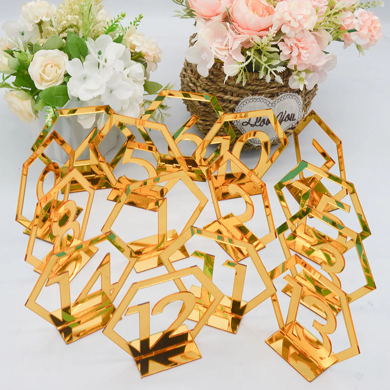 1pc 3D Numbers Signs Gold And Silver Wedding Hexagon Table Number Acrylic Table Numbers Rustic Wedding Engagement Seat Sign #G