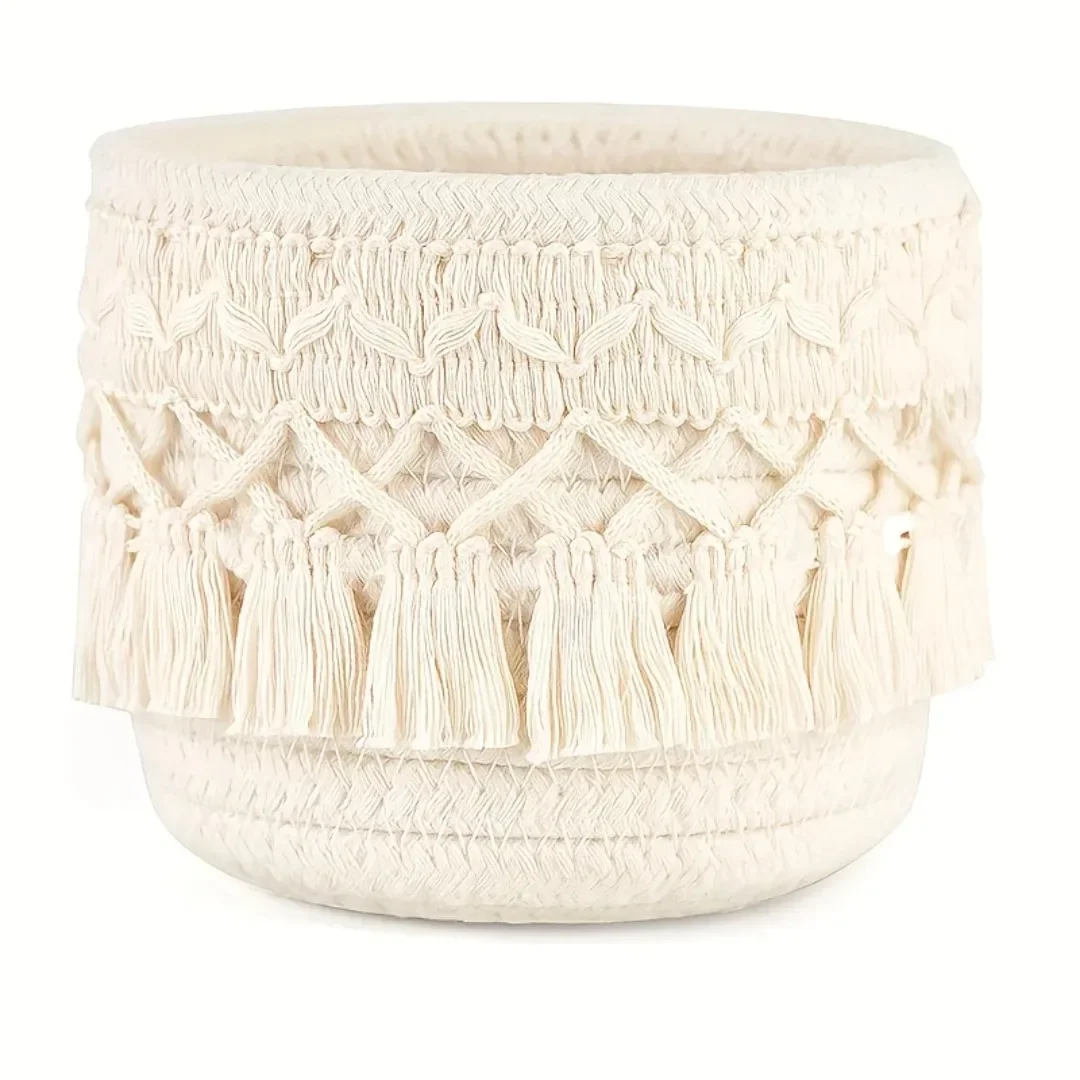 1pc Handmade Boho Chic Makeup Brush Holder Dual-Tone Woven Cosmetic Storage Basket with Tassel Detail Makeup Brushes Organizer