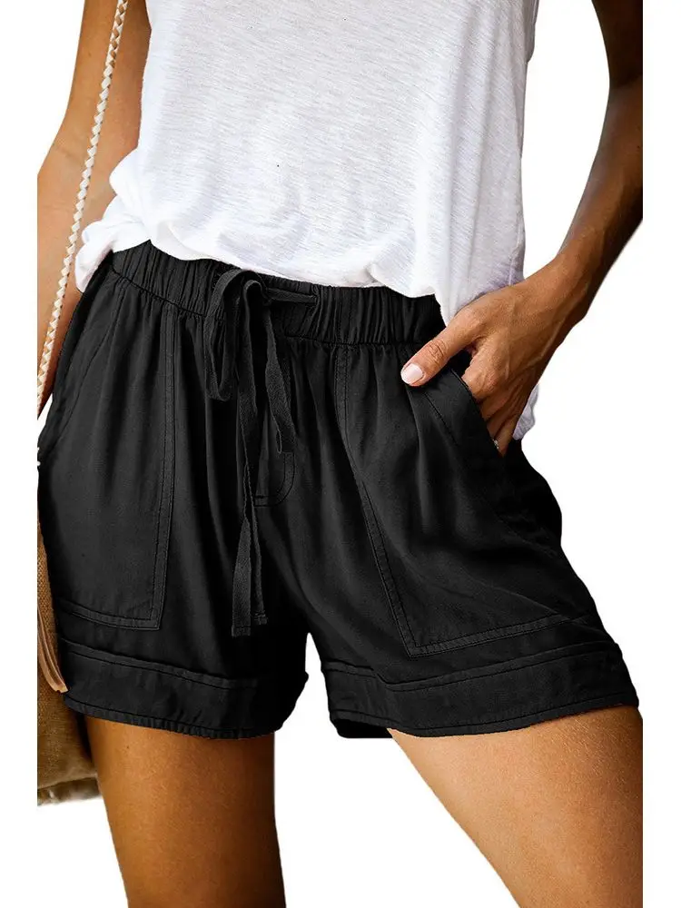 2023 Summer Elastic Waist Loose Casual Women Short Sets Pants Simple Drawstring Pockets Homewear Shorts Women Ladies Pant