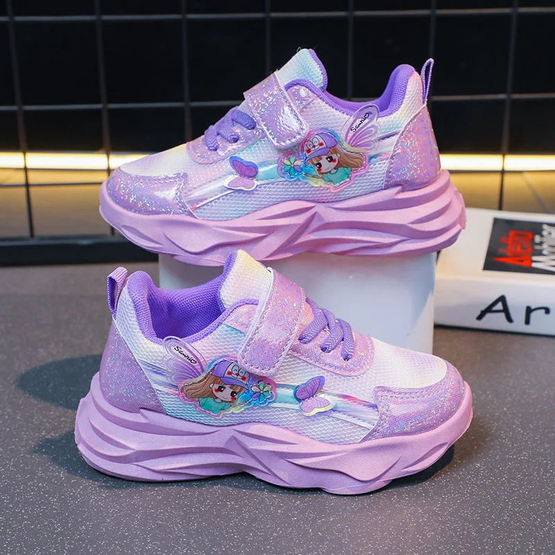 2024 Girls Autumn Sports Shoes Children's Spring Mesh Breathable Sneakers Kids Student Pink Casual Soft Walk Shoes Size 26 To 37