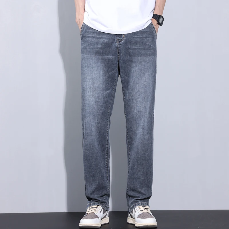2024 Summer New Style Men's Casual Straight Jeans Versatile Korean Fashion Pants Baggy Stretch Wide-leg Denim Trousers Male