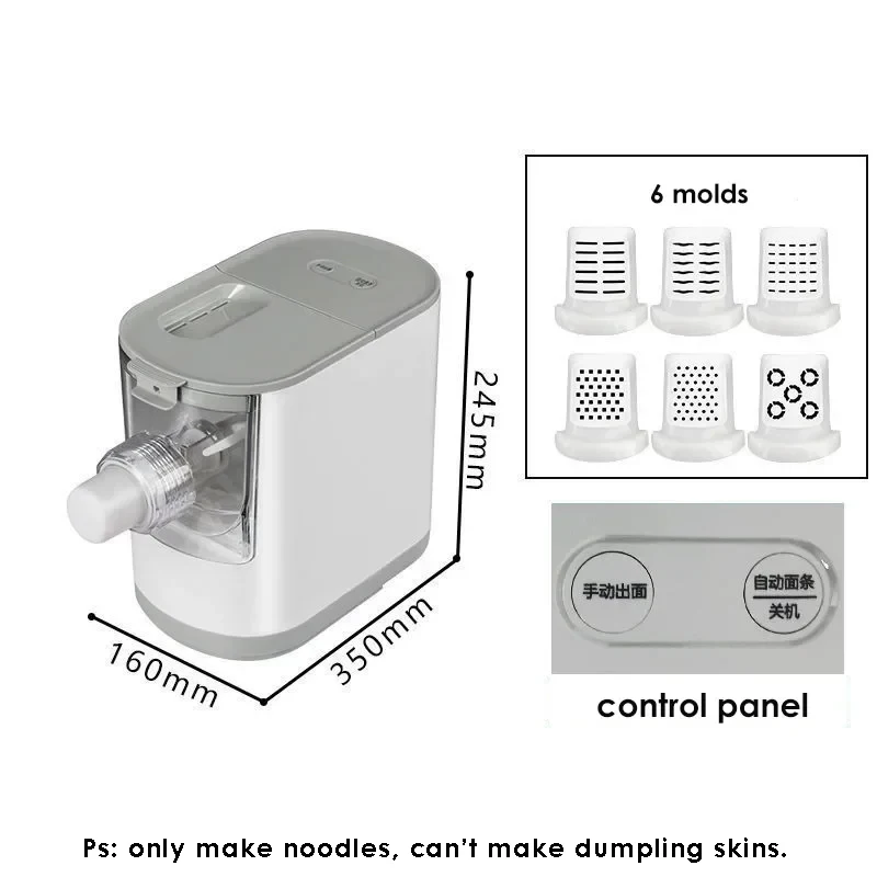 220V/ 110V Electric Automatic Noodle Maker Machine Multifunction Pasta Maker Dough Roller Dumpling Skin Machine Various Shapes clear-cut version Voltage: 220V 50HZ Power: 200W Packge list: noodle press machine+ 6 molds progressed version Voltage: 220V 50HZ Power: 260W Packge list: noodle press mechanical device (English reveal management panel) + thirteen molds+ dumpling software