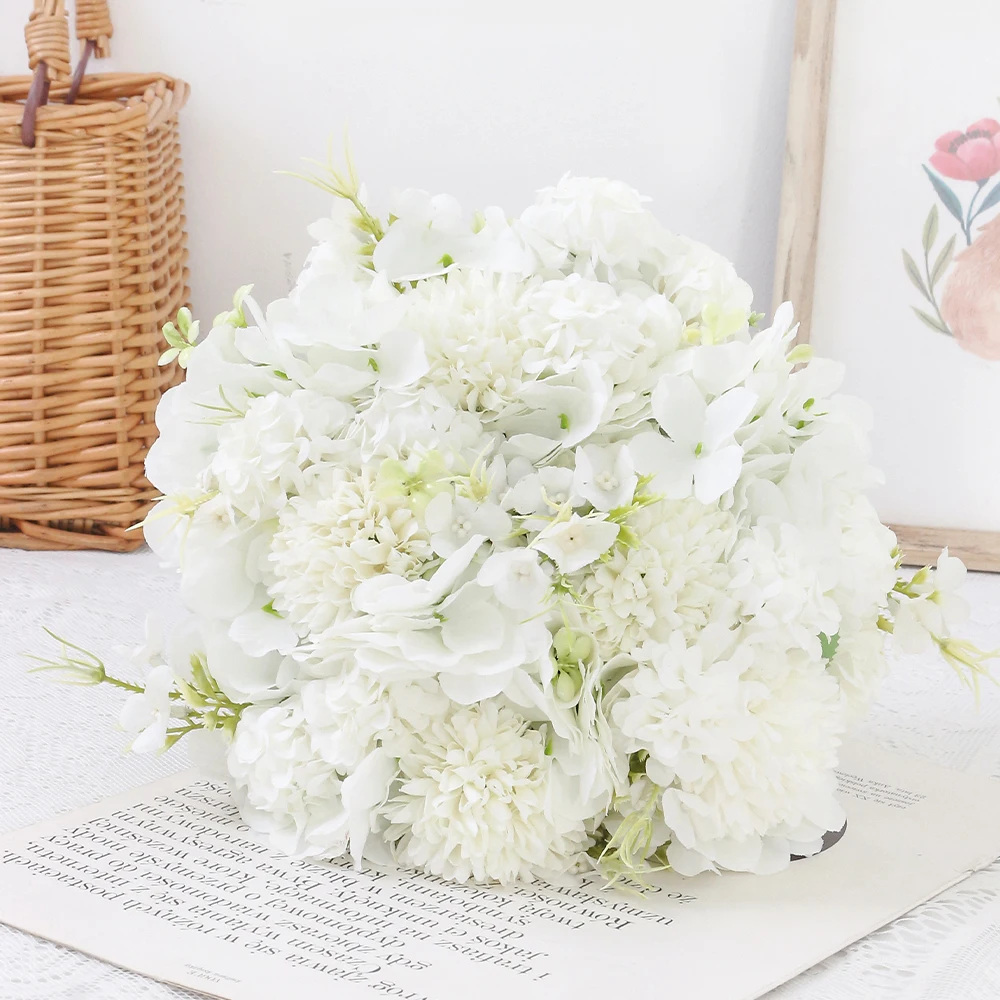 28cm White Pink Artificial Flowers 5 Heads Hydrangea Silk DIY Wedding Bridal Bouquet Fake Flowers Home Room Party Decoration