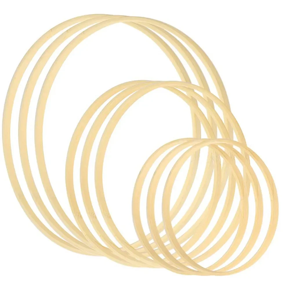 2Pcs Wooden Bamboo Floral Hoop Wreath Macrame Craft Hoop Rings For DIY Wedding Wreath Decor Dream Catcher Wall Hanging Crafts