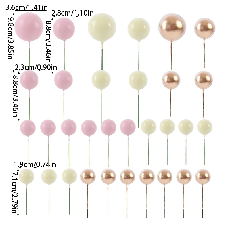 32PCS Rose Gold Ball Cake Toppers Birthday Party Pick Cupcake Insert DIY Decoration Balls Wedding Globos Deco Baby Shower Supply