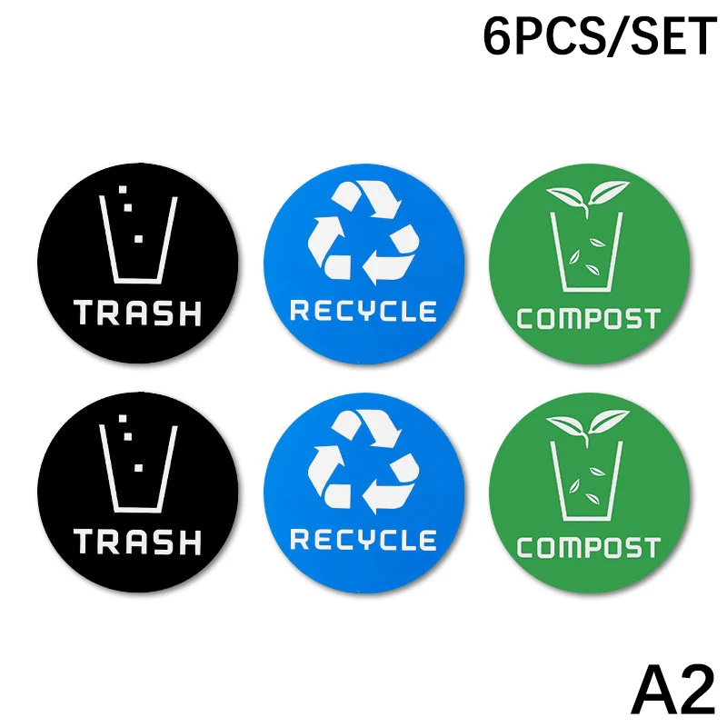 6pcs Diameter 10cm Recycle Trash Bin Sticker PVC Vinyl Stickers Decals For Label Bins Containers Garbage Cans Home Decor