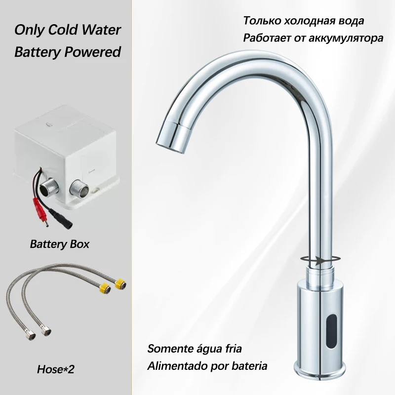 Automatic Infrared Induction Bathroom Basin Faucet.Chrome Smart Sensor Sink Faucet.Touchless Cold Hot Water Mixer Tap Crane.