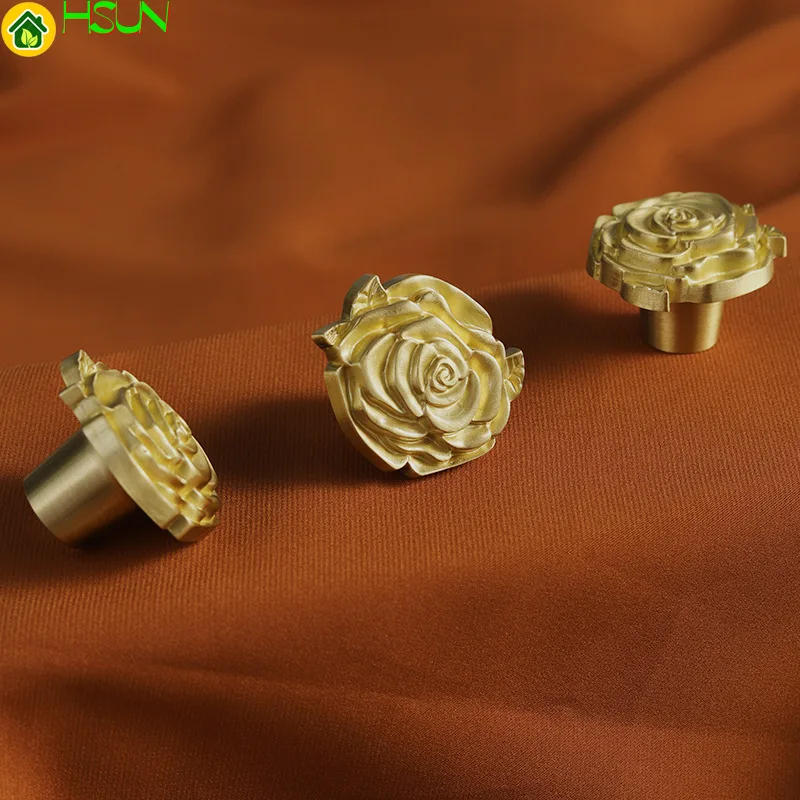 Brass handle European style luxury rose single hole pure copper wardrobe drawer door Nordic gold petal small handle