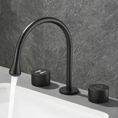 Brushed Gold Basin Faucet Brass Gray Widespread Bathroom Faucet Black Sink Faucets three Hole Hot And Cold Chrome Water Faucet Tap