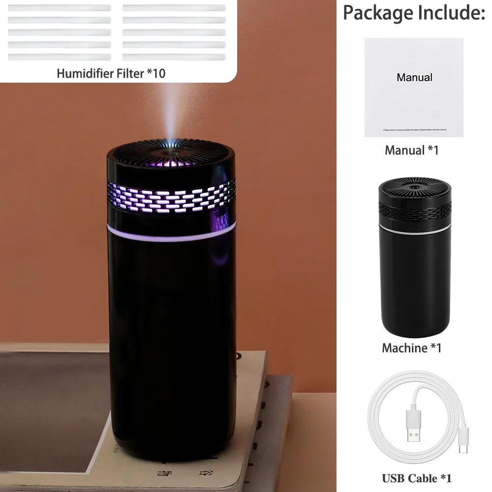 Car Air Humidifier Ultrasonic USB Home Misting Mini Humidifier Aroma Diffuser Portable Small LED Light Smoke Maker Sprayer