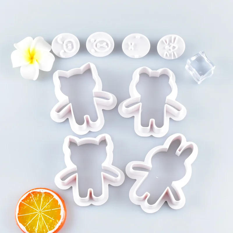 Cartoon Animal Expression Cookie Embosser Mold Cute Panda Bear Rabbit Shaped Cookie Cutter Kids Birthday Fondant Cake Decoration