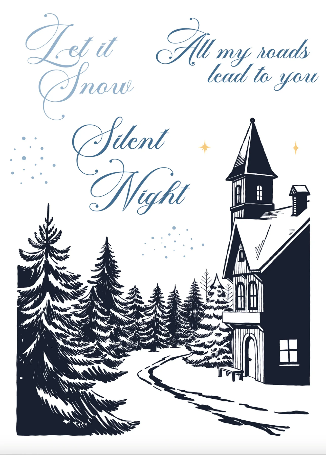 Christmas Word Postcard Road Background Clear Stamps Cutting Dies Stencil for DIY Making Gift Card Scrapbook 2025 Cozy Corners
