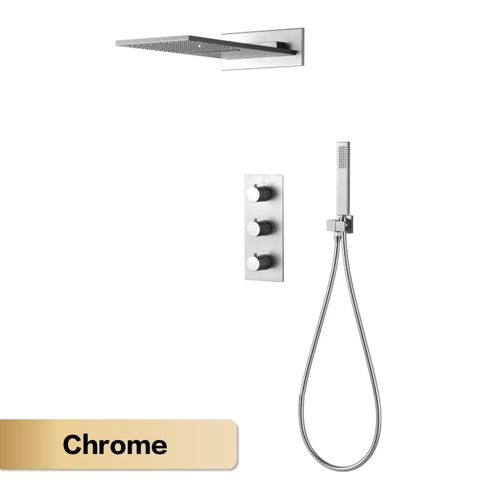 Deluxe gun gray thermostatic shower system wall-mounted design 4-function cold & hot dual-control waterfall brass bathroom Tap