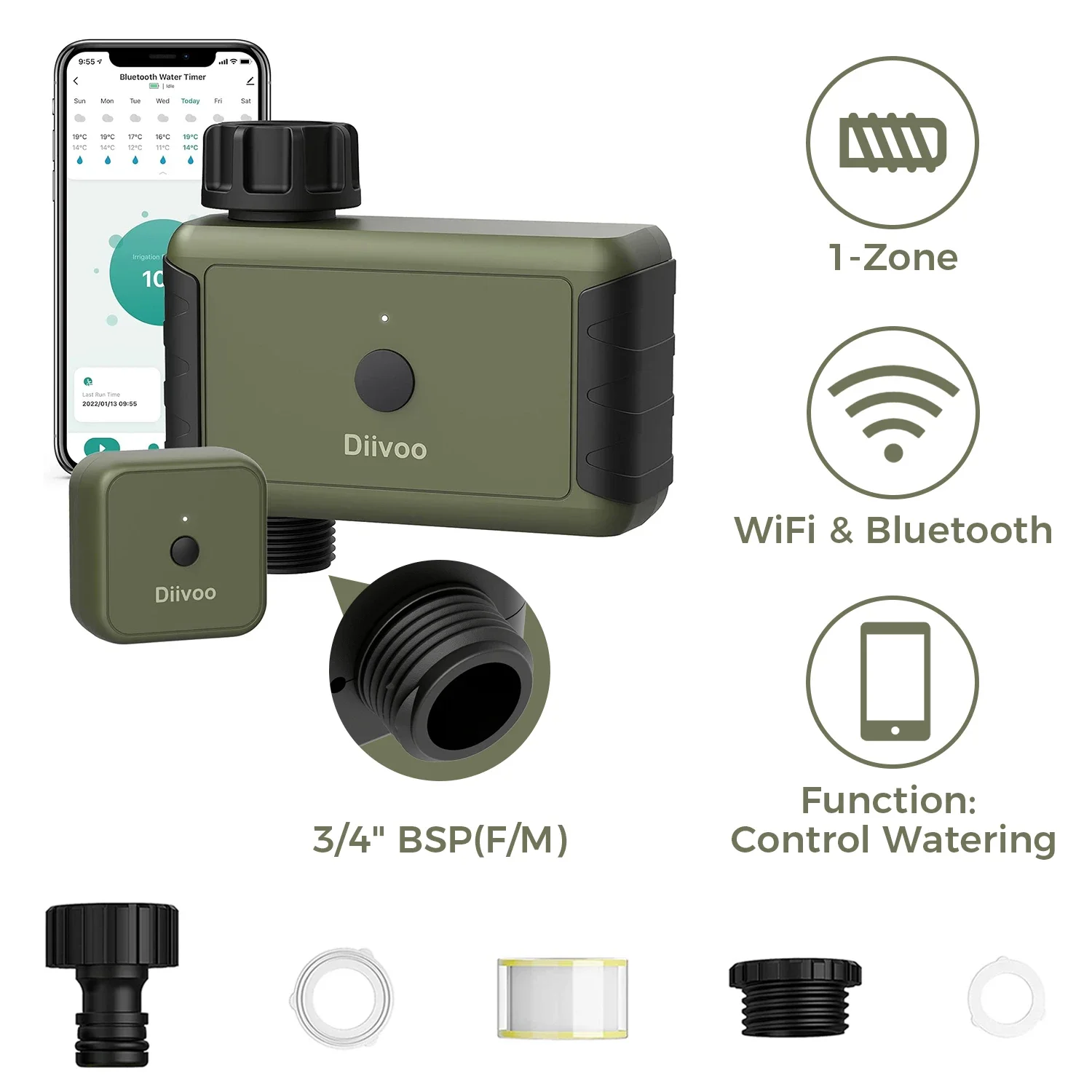 Diivoo WiFi Sprinkler Timer 1/2 Zone, Remote Control Irrigation Timer with Wi-Fi Hub, Automatic Manual Watering for Garden, Yard