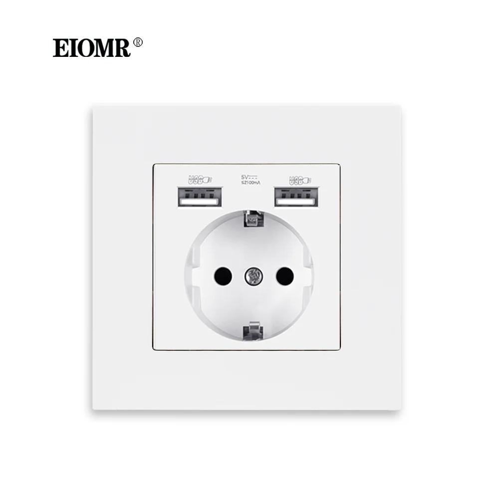 EIOMR Type-C Interface Outlet 86*86mm PC Panel Wall EU Russia Spain French Socket With USB Charge Port 5V 2A White Black Socket