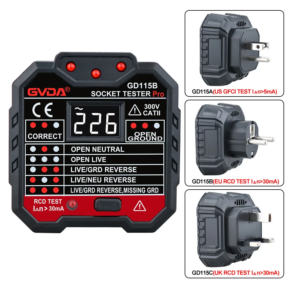 GVDA Socket Tester Outlet Detector Circuit Breaker Finders Ground Zero Line US UK EU Plug Polarity Phase Check Instruments